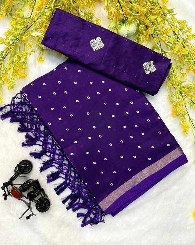 Name : PIYU P1014 Dot bandhani Purple Saree