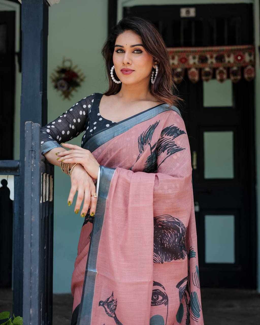 Silver Weaving Patta Linen Cotton Saree