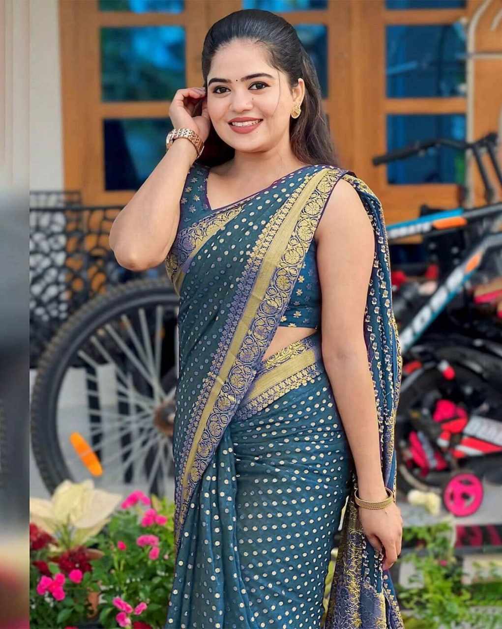 Name : | MF 1830 PETROL SOFT LICHI SILK SAREE |