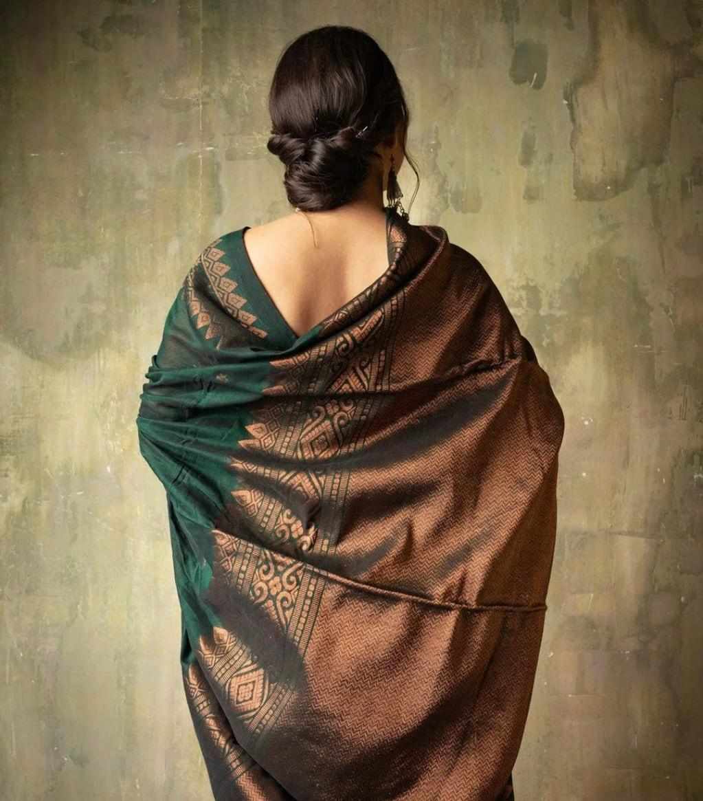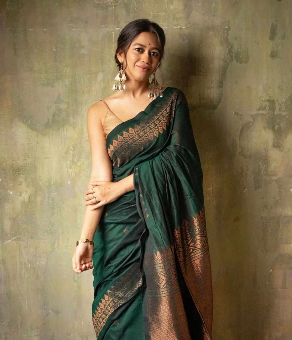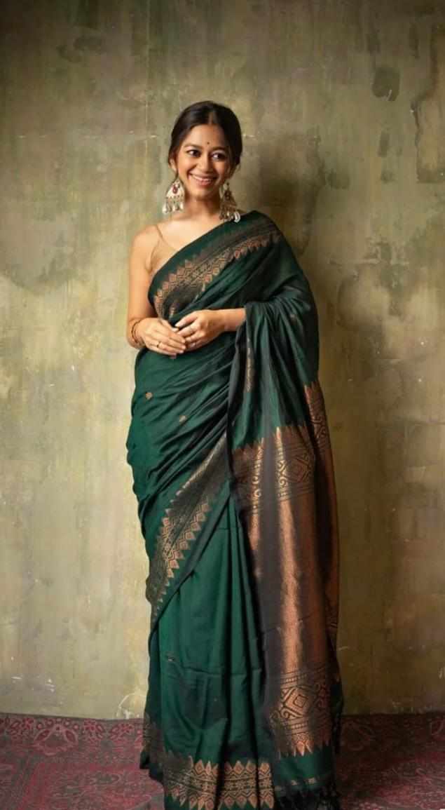 Name : | MF 1950 GREEN BANARASI SOFT LICHI SILK SAREE |