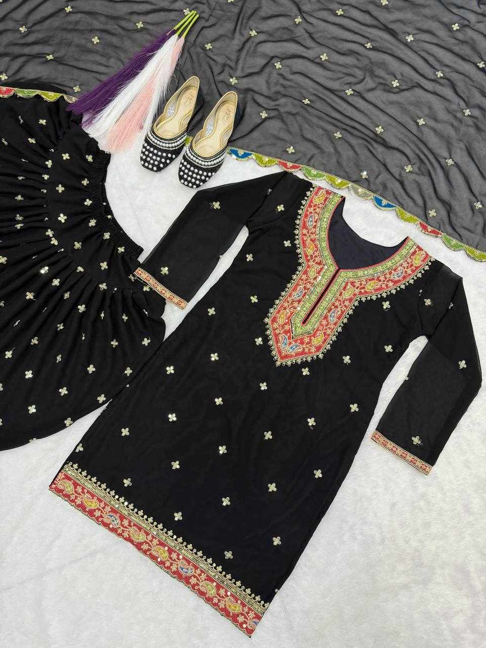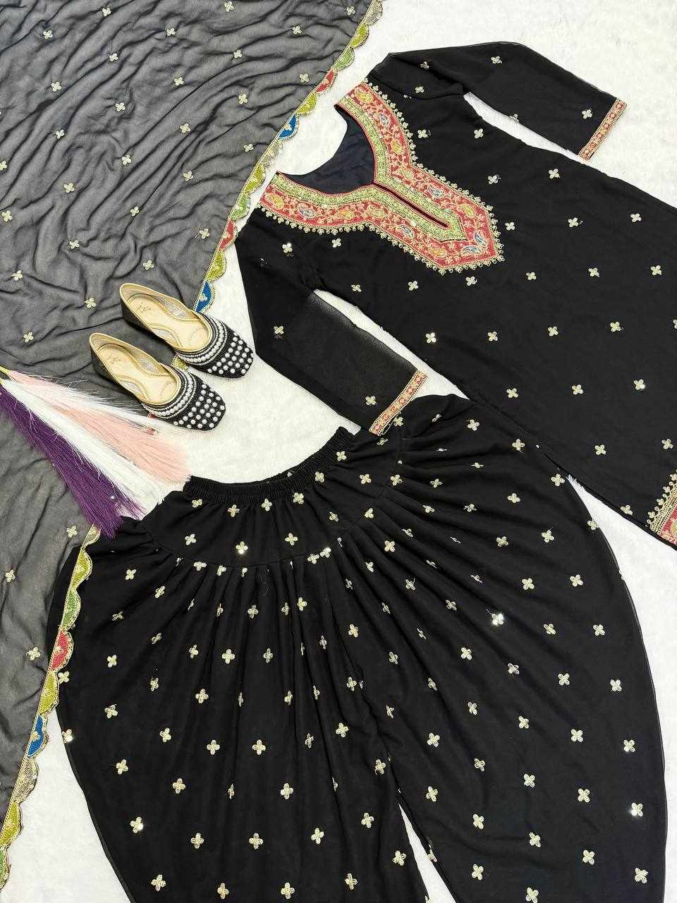 Step into elegance with this stunning Blooming Heavy Faux Georgette Dhoti Salwar Set, beautifully crafted with heavy embroidery sequence work and full sleeves. Perfect for festive occasions, weddings, parties, and traditional functions.