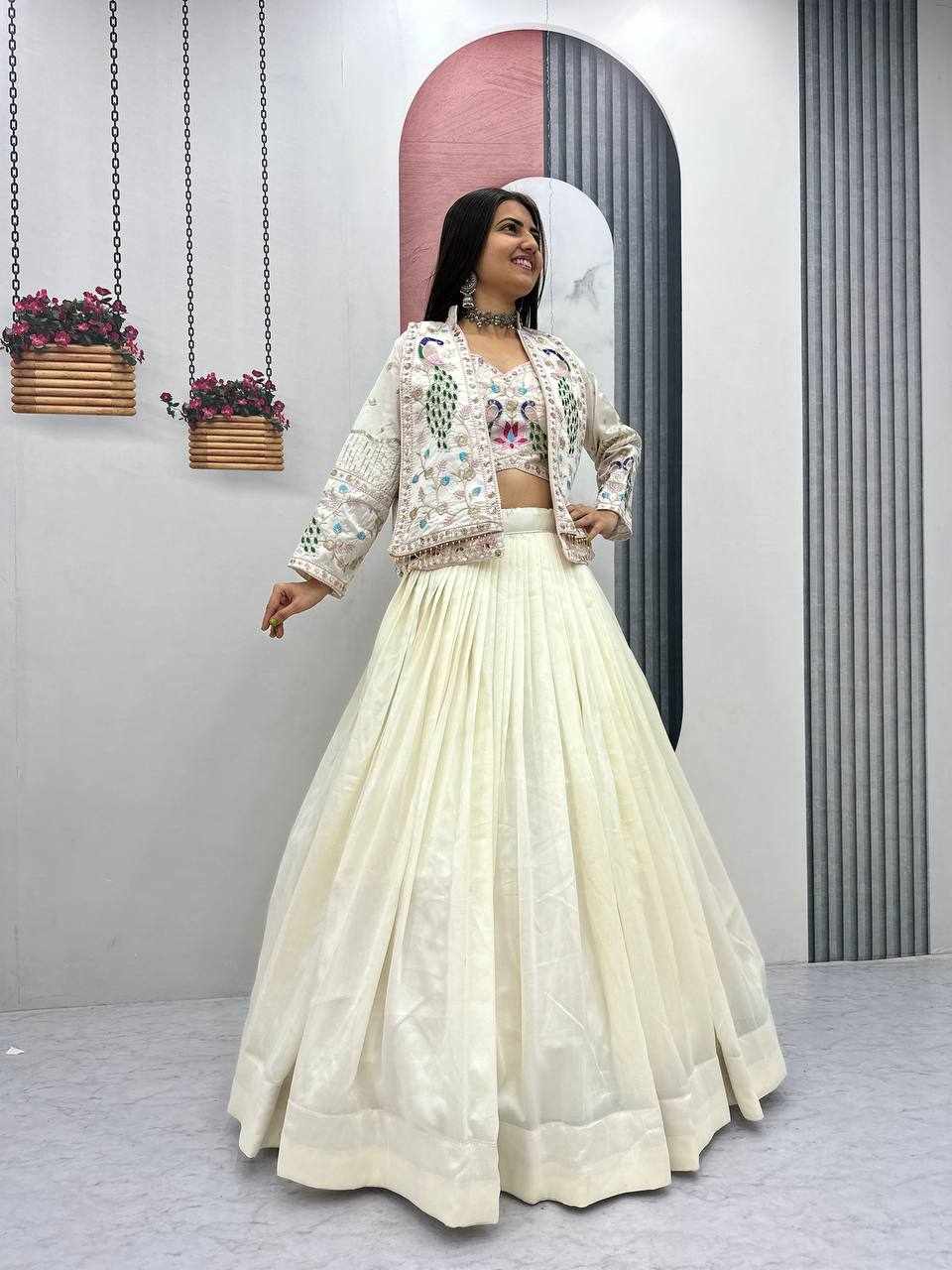 PC 559 New Modern Party Wear White Lehnga With Jacket has been successfully added to your cart .