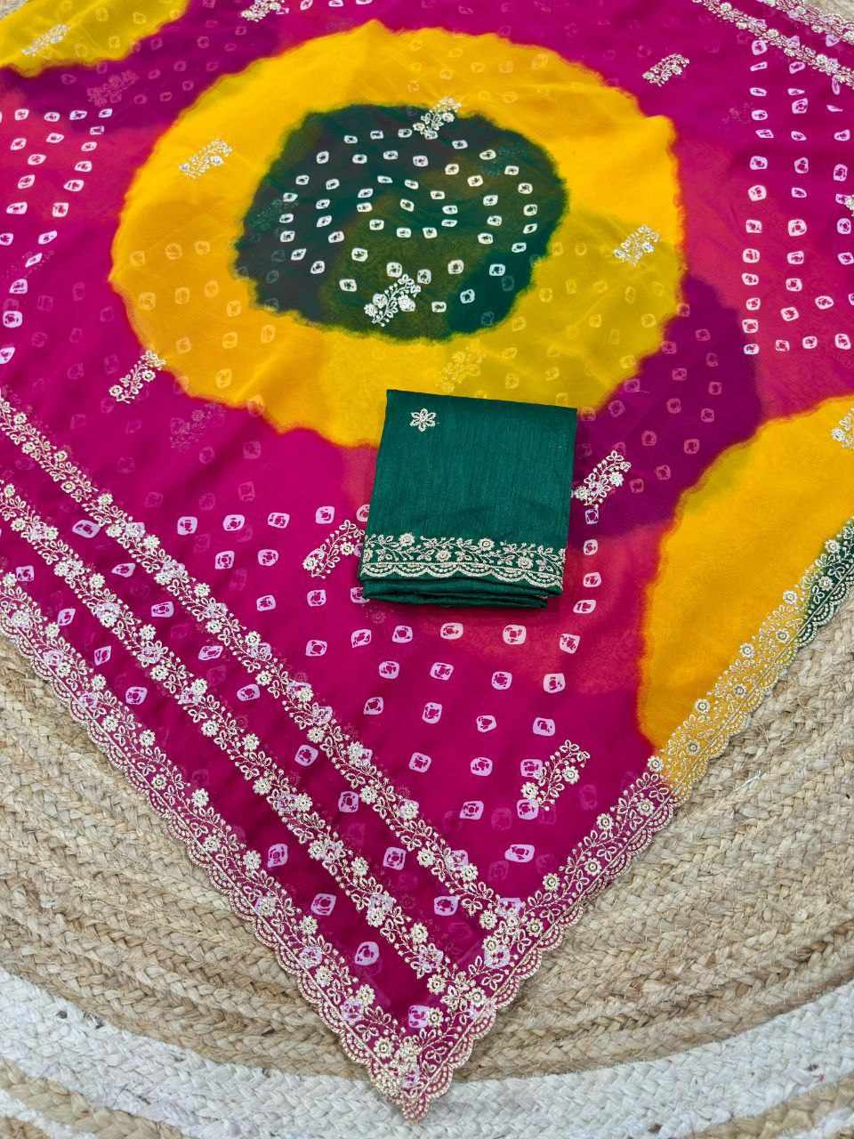 | Name : | PIYU P1051 LEHERIYA BANDHANI-3 Pink Saree |
