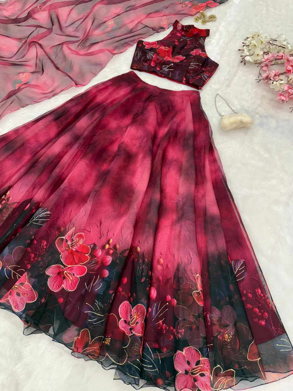 Dupatta – Stylish 2-meter organza printed dupatta with designer lace border.